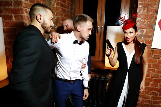 Представители шоу- и кинобизнеса были замечены в центре Москвы на шпионской вечеринке, посвященной 20-летию фильма «Ангелы Чарли», по приглашению коллег — девичьего трио Queens. Актриса Ирина Безрукова, Валерия и Иосиф Пригожин, выпускник одной из «Фабрик звезд» Дмитрий Бикбаев, Эвелина Бледанс, Александр Иншаков, группа «Земляне», королева русского R&B Бьянка и другие гости наблюдали за тем, как в клубе был захвачен шпион, да не один, отведали бутерброды с черной икрой и подняли бокалы с изысканными напитками за День защитника Отечества.