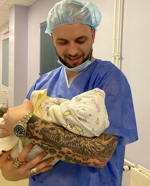 Александр также выложил снимок, на котором держит малышку на руках. Имя ребенка пара пока скрывает.