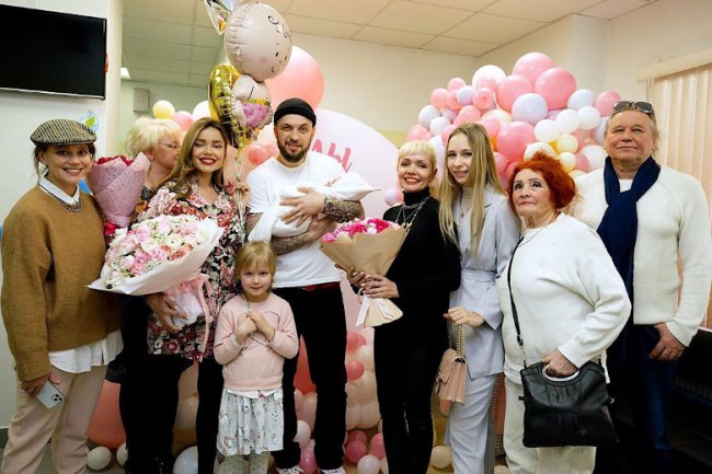 В Instagram Ассоль показала яркие кадры из клиники с мужем, ребенком и родителями. Также поздравить звездную пару приехали близкие друзья и журналисты.