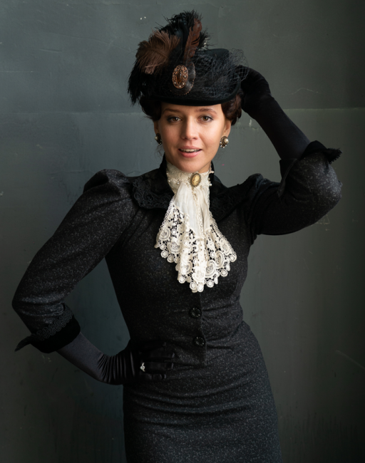 — В такие исторические роли легко вживаться, а костюм и грим очень помогают. Это невероятно, но когда надеваешь платье, сапожки, шляпки — ты уже другой человек. Не можешь разговаривать быстро, добавляя какие-то современные слова, сленг. Долгий грим перед зеркалом помогает настроиться и перевоплотиться, найти образ, манеру поведения. Сразу появляется «правильный взгляд из-под шляпки», интересный, присущий характеру героини. Может быть, потому, что я профессиональный хореограф и привыкла к зеркалу. Когда ты занимаешься балетом, всегда контролируешь себя в отражении и учишься с ним работать.