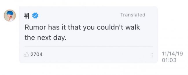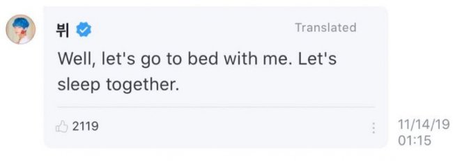 Впрочем, это далеко не первый случай, когда из-за автоматического переводчика Ви превращается в мастера флирта или даже в Казанову. Порой сообщения айдола выглядят очень забавно. Особенно если знать, что он писал их не самостоятельно.