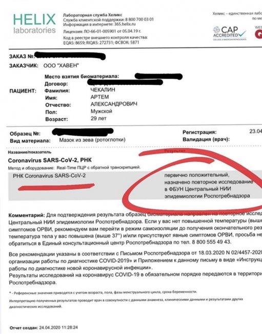 Известно, что первый тест на определение COVID-19 сразу дал положительный результат. По словам Лерчека, Артем сдал анализы на всякий случай, поэтому никто не ожидал увидеть подтверждение диагноза.