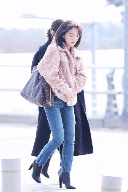 Когда на улице чуть холодает и приходится надевать верхнюю одежду, Вэнди отдает предпочтение укороченным курткам. Например, на этой фотографии девушка надела мягкую овер-сайз куртку грязно-розового цвета, которая в сочетании с сумкой Louis Vuitton и сапожках на высоком каблуке превратила ее в настоящую бизнес-леди.