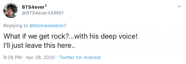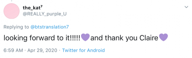 — 「 claire ⁷ 」 (@btstranslation7) April 28, 2020