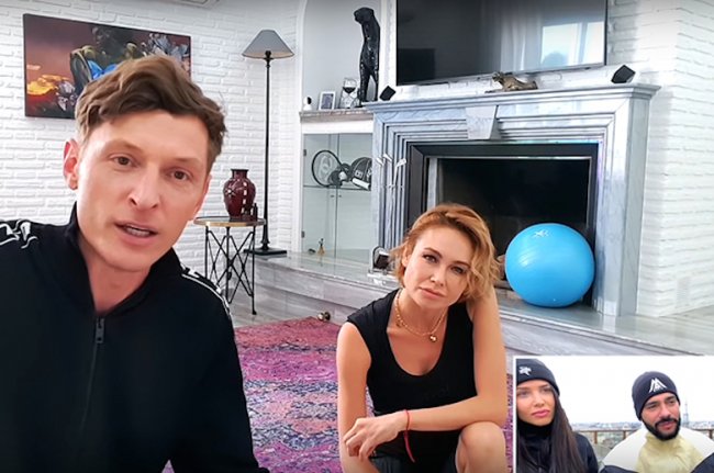 Зарядку в прямом эфире артисты провели вместе со своими возлюбленными – Ляйсан Утяшевой и Анастасией Решетовой