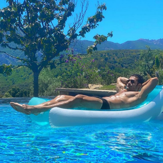Вчера влюбленные взяли перерыв и решили понежиться на солнышке. Сэм приехал в коттедж к Бритни, запустил надувной матрас в бассейн и попросил певицу заснять, как он играет мышцами.