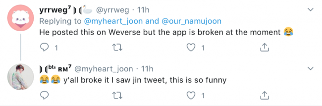 «Он выложил его на Weverse, но сейчас приложение не работает».