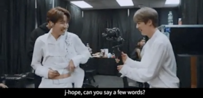Затем Джин отправился к Джей-Хоупу (J-Hope), но камера в очередной раз начала жить своей жизнью и снимать лишь макушку головы айдола.