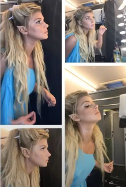 Образ эльфийки она дополнила голубым нарядом и острыми ушками. К слову, в таком виде Настя снималась в своем клипе «Я – луна», который выпустила еще в 2017 году. Видео в стиле фэнтези снимали в Португалии, а презентовать свою работу Задорожная решила в день своего рождения, 30 августа.