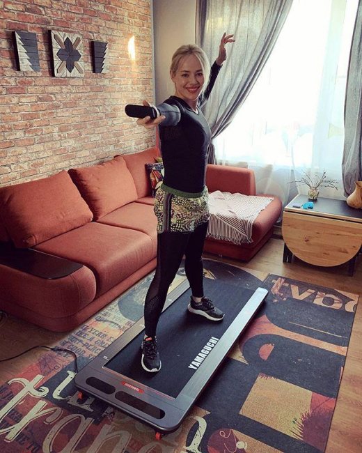 - К счастью, есть масса приложений, платформ, которые можно скачать для удобных занятий спортом. Внутри них есть папки — и домашняя йога, и растяжка, и круговая тренировка. Пробую все, мне интересно! Очень нравится, как построены эти тренировки. Все упражнения безопасны, техника объясняется, нагрузка рассчитана. Такой контент есть сейчас везде. Появилась у нас дома и беговая дорожка.