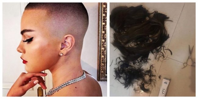 Информация о новой прическе Гомес появилась в одном из фан-аккаунтов, посвященных певице. Девушка, которая ведет страничку в Twitter, выложила твит с фотографией лысой Селены, а также снимок волос и ножниц, лежащих на полу.