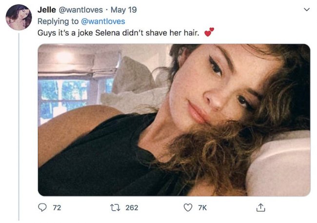 «Ребят, это шутка. Селена не сбривала волосы»,