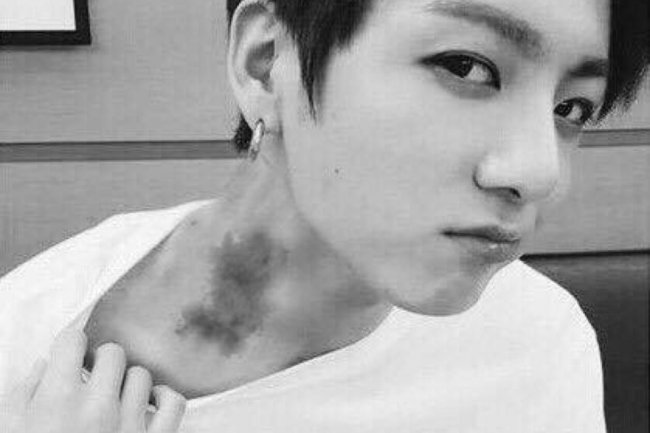 Чонгук (Jungkook) вовсе не стесняется ходить в открытой футболке с таким большим засосом на шее!