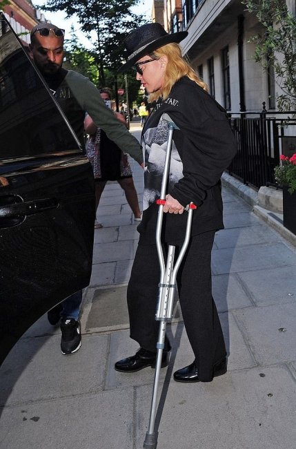 В сети появились снимки на которых известная певица Мадонна передвигается на костылях. Несколько дней назад женщина посетила частную больницу короля Эдуарда VII в Лондоне, напомним, что на последнем своем концерте, который прошел в марте, она сильно травмировала свое колено.