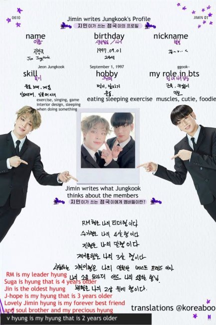 bts writing their own profiles about the members: my soulmate my life my little one my pillar my everything