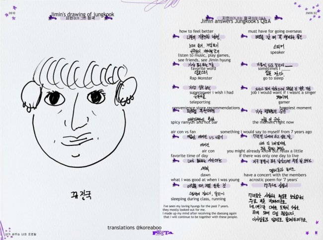 В рамках этого проекта парням нужно было написать профили других участников группы, чтобы проверить, как хорошо парни знают друг друга. Так, RM заполнял профиль Джей-Хоупа (J-Hope), Шуга (Suga) – анкету Намджуна, Джин (Jin) писал о Чимине (Jimin) и так далее.